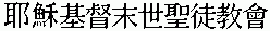 In Mandarin (the majority, or “official” dialect in the People’s Republic of China and in Taiwan), this is pronounced Yesu Jidu Moshi Shengtu Jiaohui. Literally, taking the characters two at a time (these are all two-character words), “Jesus Christ Last-days Saint Church.”