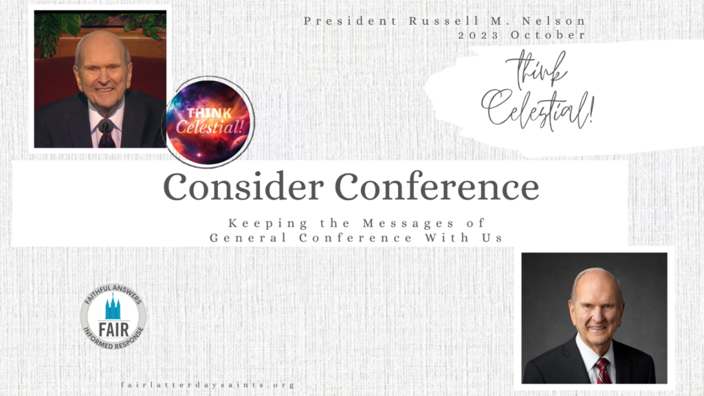 “Thinking Celestial” means to view our choices and the circumstances of our lives with an eternal perspective.