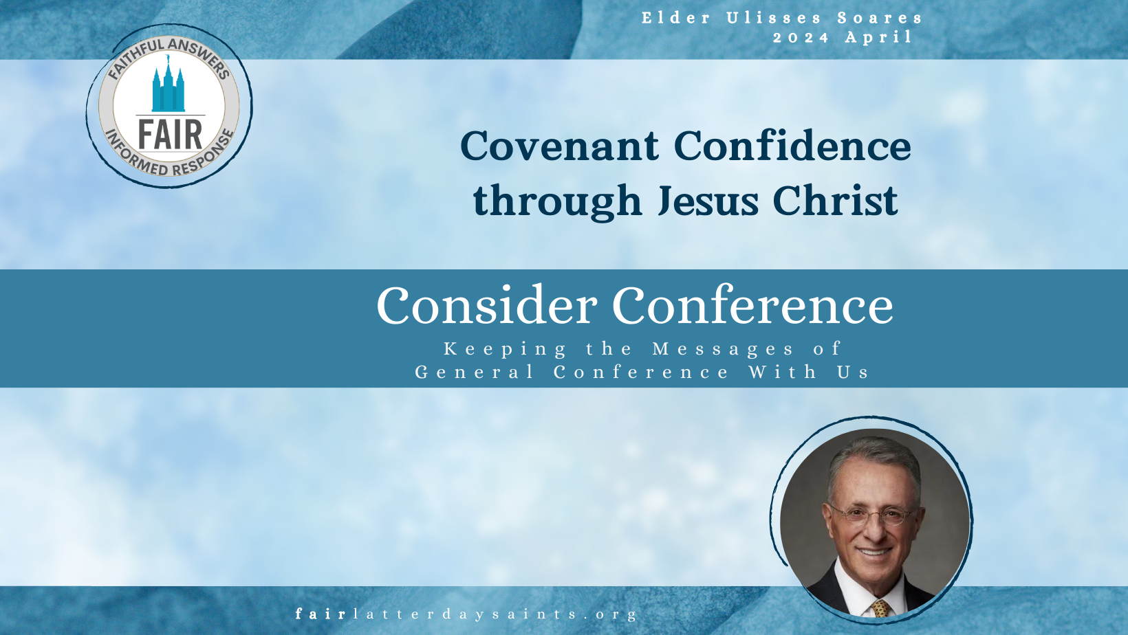 - I pray that we may be spiritually renewed by the inspired messages from our leaders this weekend and rejoice in what I love to call “covenant confidence through Jesus Christ.”