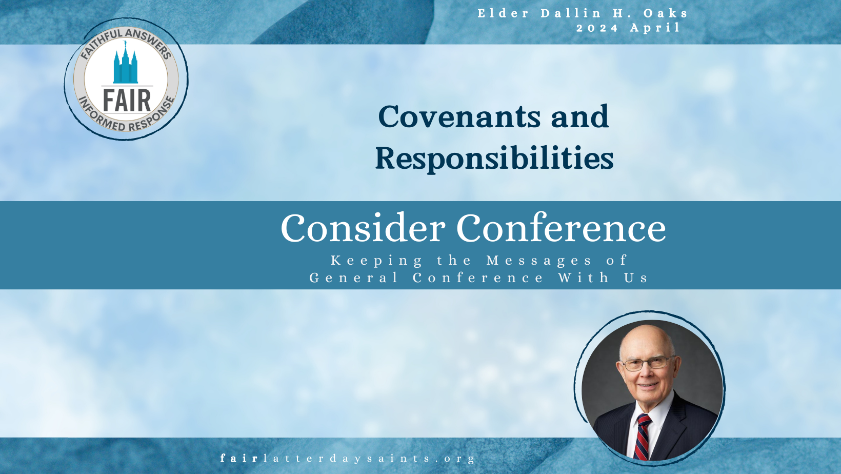 - In his talk “Covenants and Responsibilities,” President Dallin H. Oaks emphasizes the foundational role of covenants in The Church of Jesus Christ of Latter-day Saints and their significance in both personal and societal commitments. He explains that covenants, formal commitments to fulfill specific responsibilities, are essential for personal regulation and societal functioning. Highlighting examples from various professions and religious traditions, he underscores the importance of covenants in the restored gospel of Jesus Christ, particularly through ordinances like baptism and temple ceremonies. Temples and the associated covenants are central to the Church’s mission, providing unique blessings and binding members to Christ, ultimately guiding them toward eternal life.