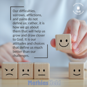 - Our difficulties, sorrows, afflictions, and pains do not define us; rather, it is how we go about them that will help us grow and draw closer to God. It is our attitudes and choices that define us much better than our challenges.