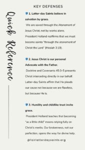 1. Thank you for this True Grace/Holy Ghost Spirit Empowered explanation and observation. This LDS self-arrogance, boastfulness, pridefulness, rightiousness arrow, dart, rock, spear is endlessly colored, drawn, painted by LDS critics against us. The Atonement, It Is The Central Doctrine, Accessing His True Grace By True Faith, Washing My Garment In His Blood, He Died To make Man Holy, It’s Not Just 6 Words To A Song, they Have Eternal Meaning. Salvation Comes In And Through His Atoning Blood And In No Other Way. Amen, Amen, Amen.