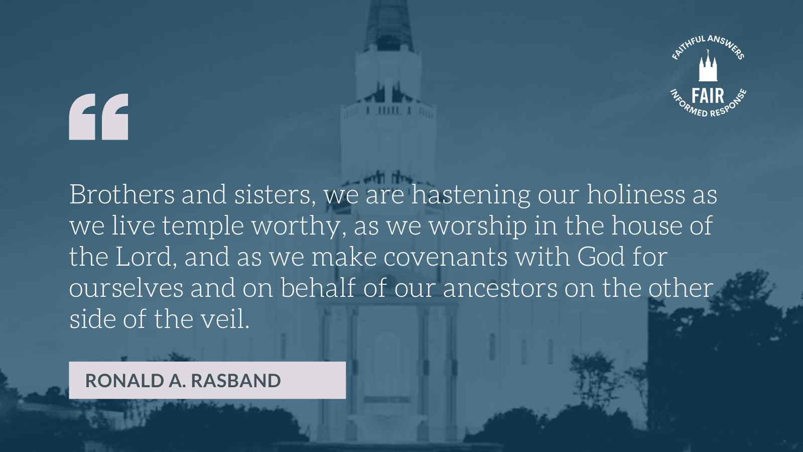 “We are hastening our holiness as we live temple worthy, as we worship in the house of the Lord, and as we make covenants with God.” —Elder Ronald A. Rasband