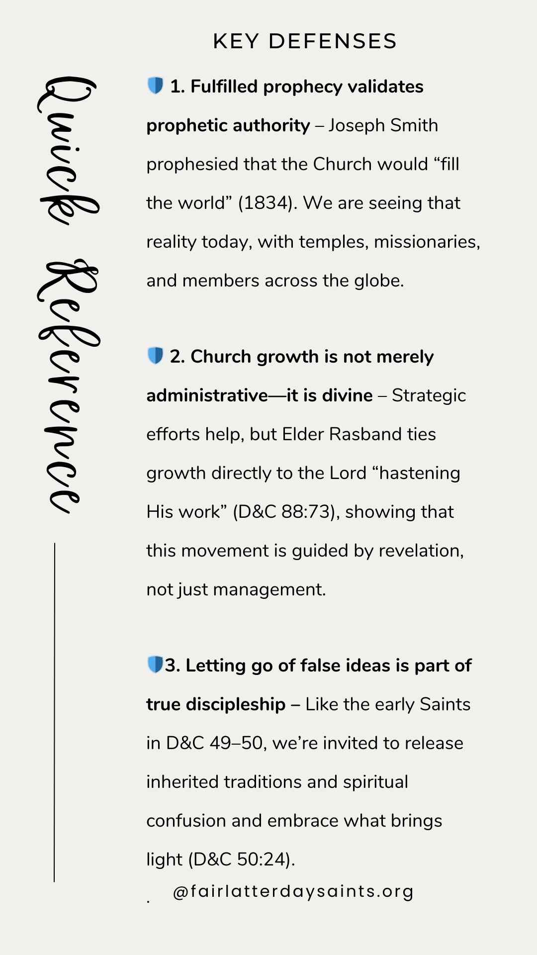 While organizational efforts matter, divine foresight and prophetic vision give the Church its spiritual momentum. Elder Rasband’s talk illustrates that growth is happening in harmony with prophecy—not just strategy. When we view numbers, temples, and conversions through the lens of prophecy, we see not just human effort, but God’s plan unfolding in real time.