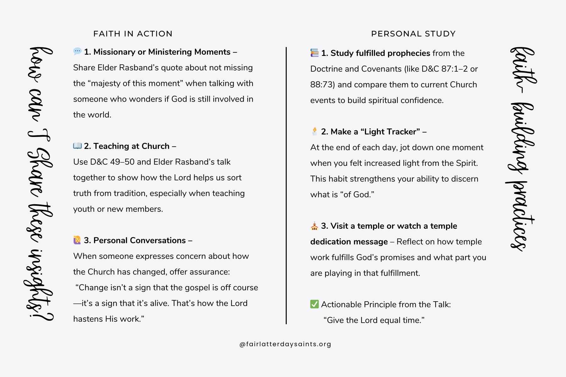 By drawing attention to the fulfilled prophecy of Church expansion, Elder Rasband builds on the same principles taught in D&C 49–50: