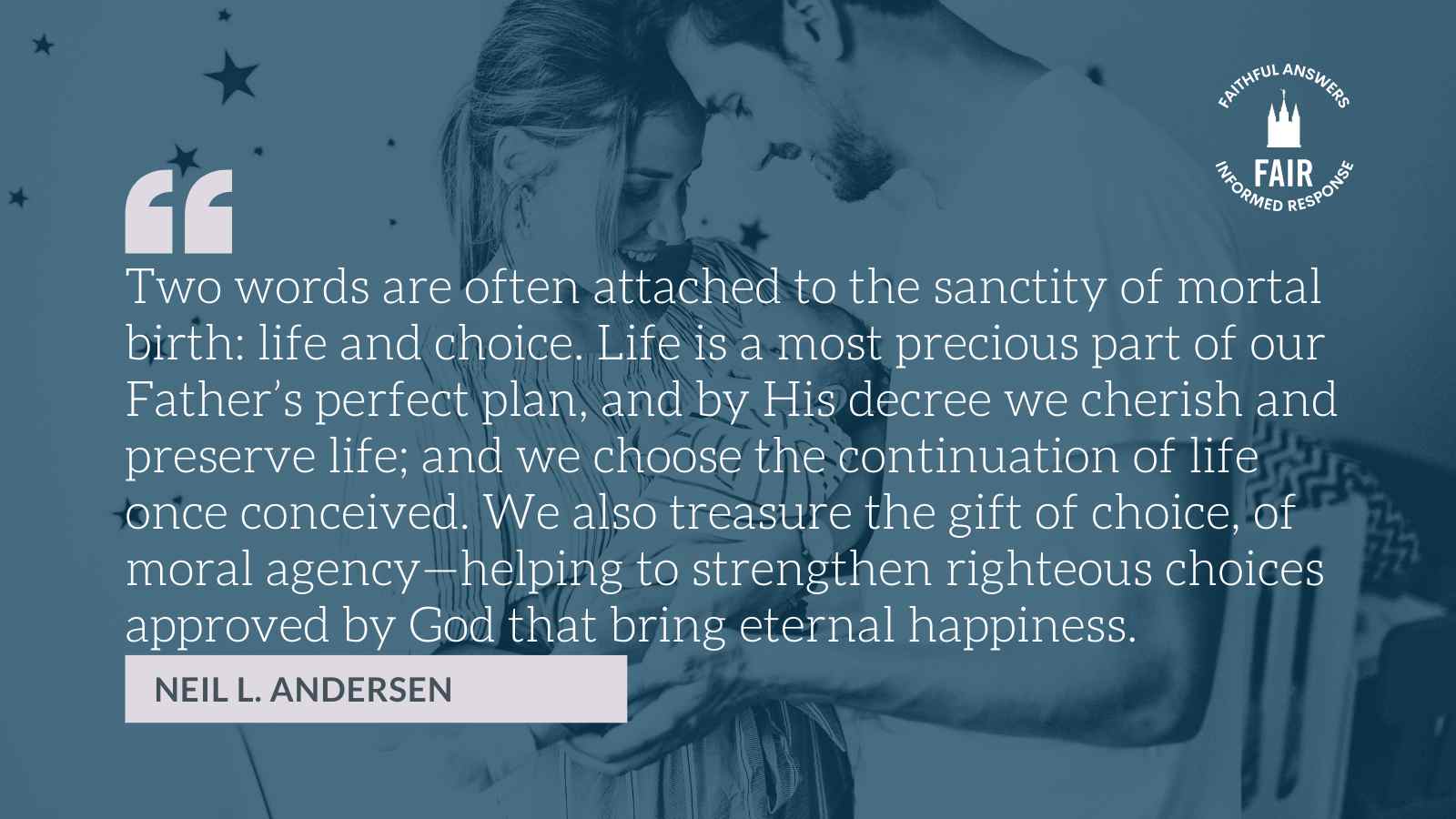 “Nurturing and protecting life that is yet unborn is not a political position. It is a moral law confirmed by the Lord through His prophets.” — Elder Neil L. Andersen