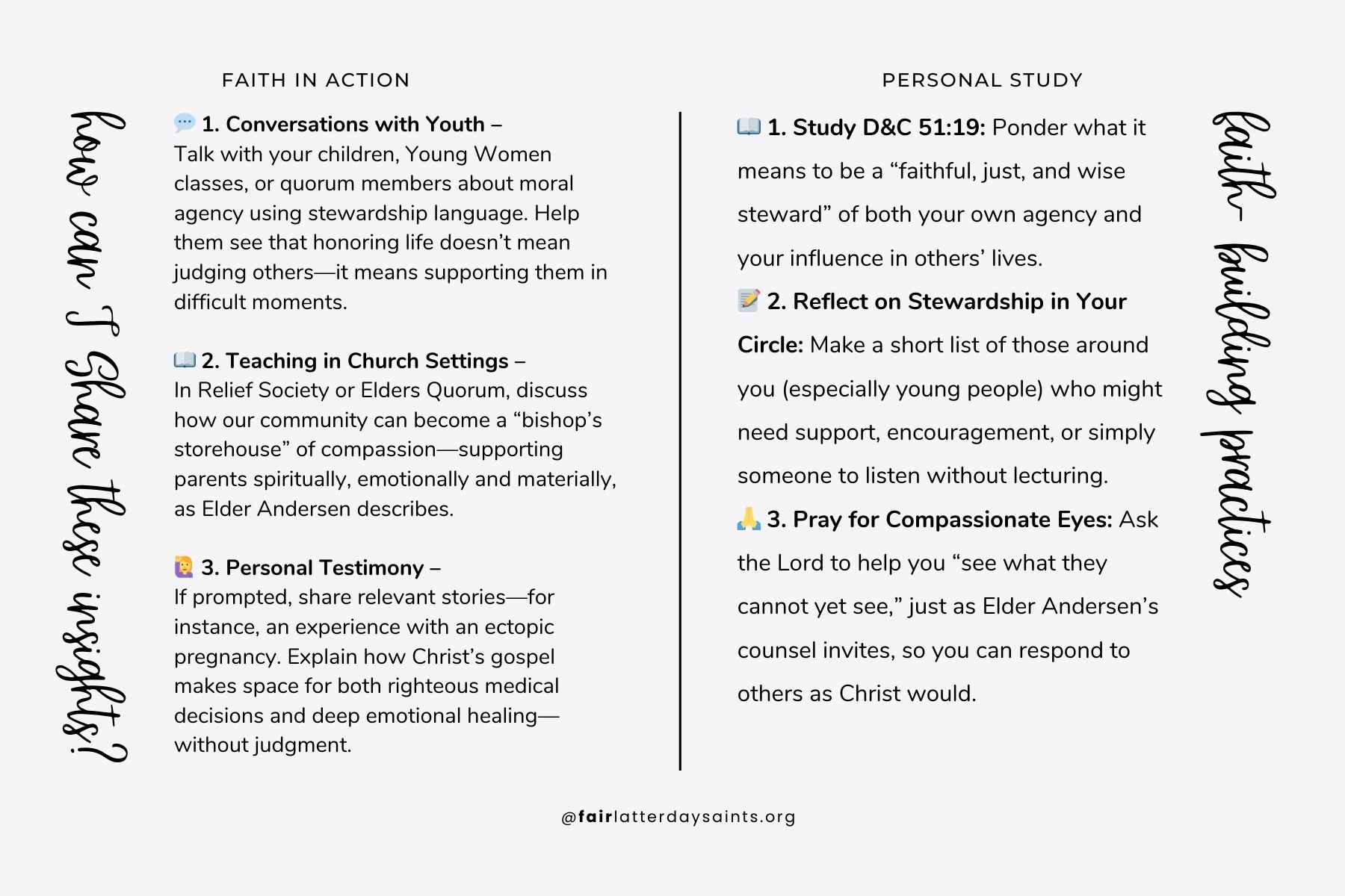 📚 1. D&C 51 introduces stewardship as a divine principle – Early Saints were taught to treat property, time, and responsibility as sacred trusts. This principle extends to agency and influence, especially in matters of life and care.