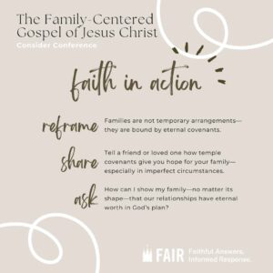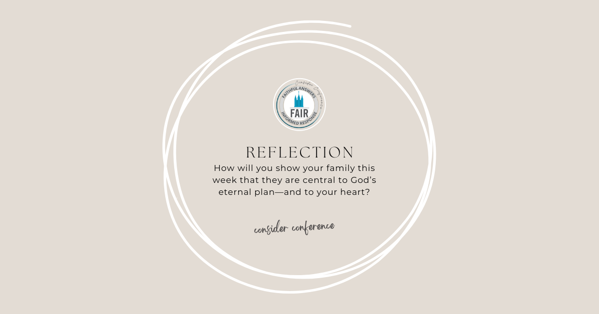 The Consider Conference series by FAIR offers an in-depth look at recent General Conference talks to help members of the Church of Jesus Christ of Latter-day Saints navigate common questions, misunderstandings, and criticisms. Each post provides doctrinal insights, historical context, and practical ways to apply gospel principles in everyday conversations. Through this series, we hope to equip readers with faith-promoting resources that encourage thoughtful reflection, respectful dialogue, and a stronger foundation in gospel truths, fostering both personal conviction and meaningful discussions with others.