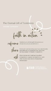 - Write down one experience that helped form your testimony and revisit it prayerfully.