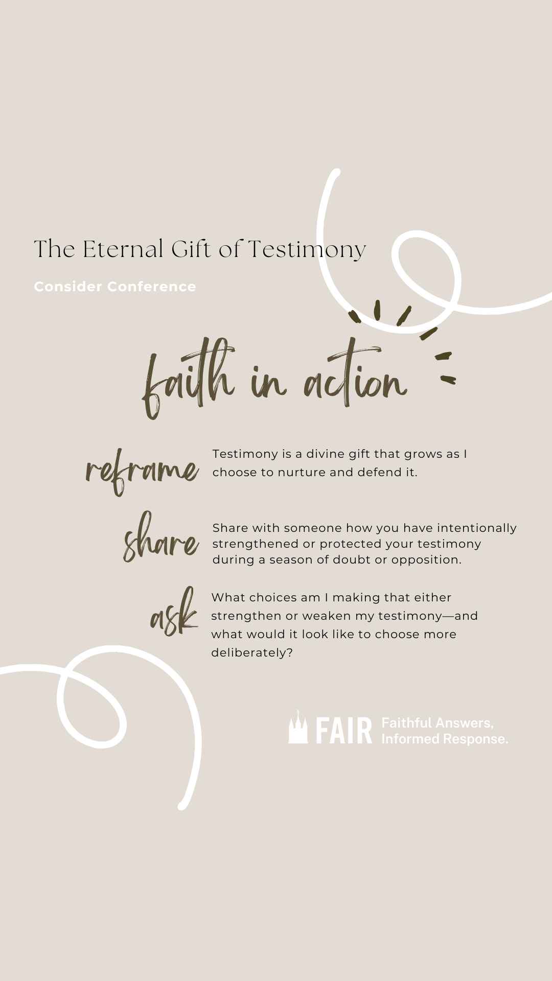 The Consider Conference series by FAIR offers an in-depth look at recent General Conference talks to help members of the Church of Jesus Christ of Latter-day Saints navigate common questions, misunderstandings, and criticisms. Each post provides doctrinal insights, historical context, and practical ways to apply gospel principles in everyday conversations. Through this series, we hope to equip readers with faith-promoting resources that encourage thoughtful reflection, respectful dialogue, and a stronger foundation in gospel truths, fostering both personal conviction and meaningful discussions with others.