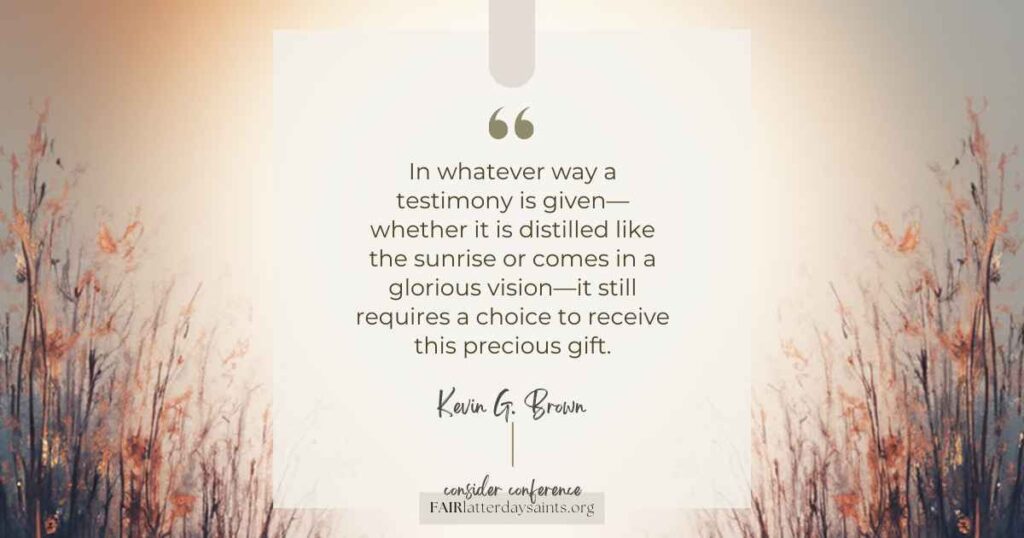 Elder Brown teaches that testimony is indeed a gift from God—but it is a gift entrusted to us. Like faith, testimony must be exercised, protected, and strengthened through righteous choices. It grows as we act on truth, defend it when challenged, and continue choosing Christ even when belief feels costly.
