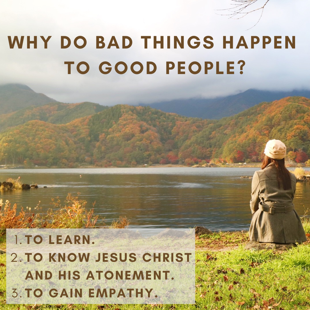Even though life can be hard, we can find peace in knowing that our trials come for a reason. They help us learn, come closer to Christ through His Atonement, and have empathy for those around us. We are promised time and time again in the scriptures that as we endure faithfully, “all things shall work together for [our] good” (Doctrine and Covenants 90:24).The trials we face will eventually come to an end, and we have a loving Heavenly Father who will eventually resolve all of the “whys” we face now.