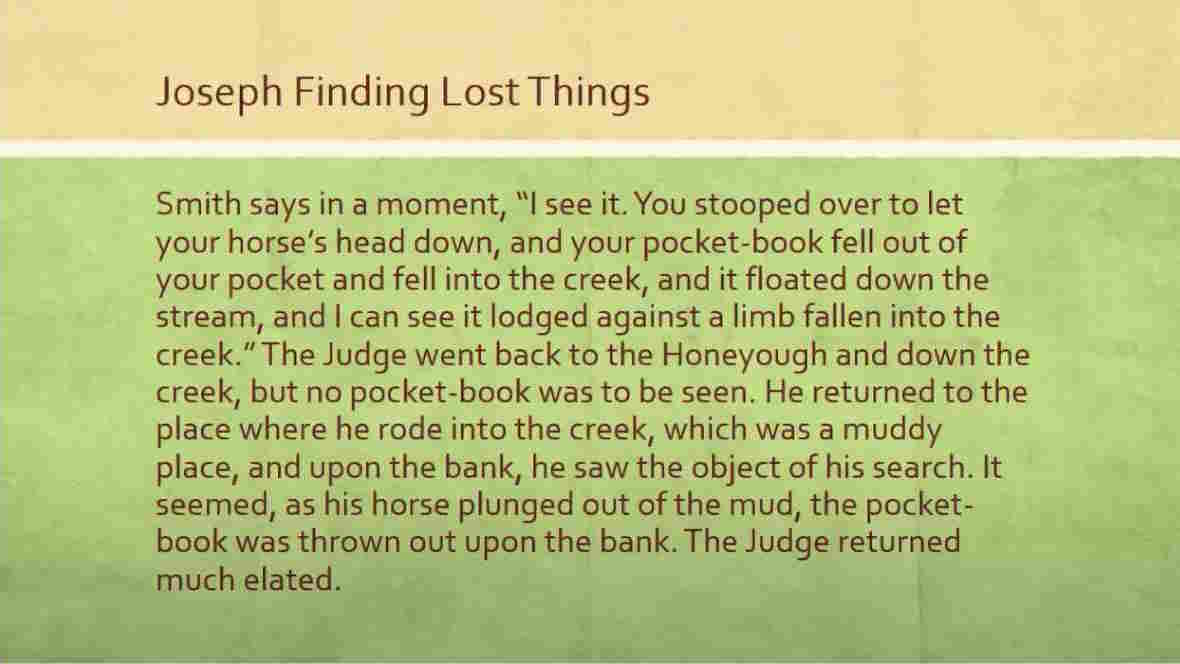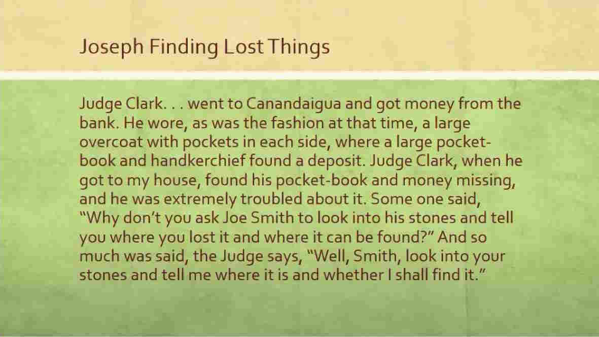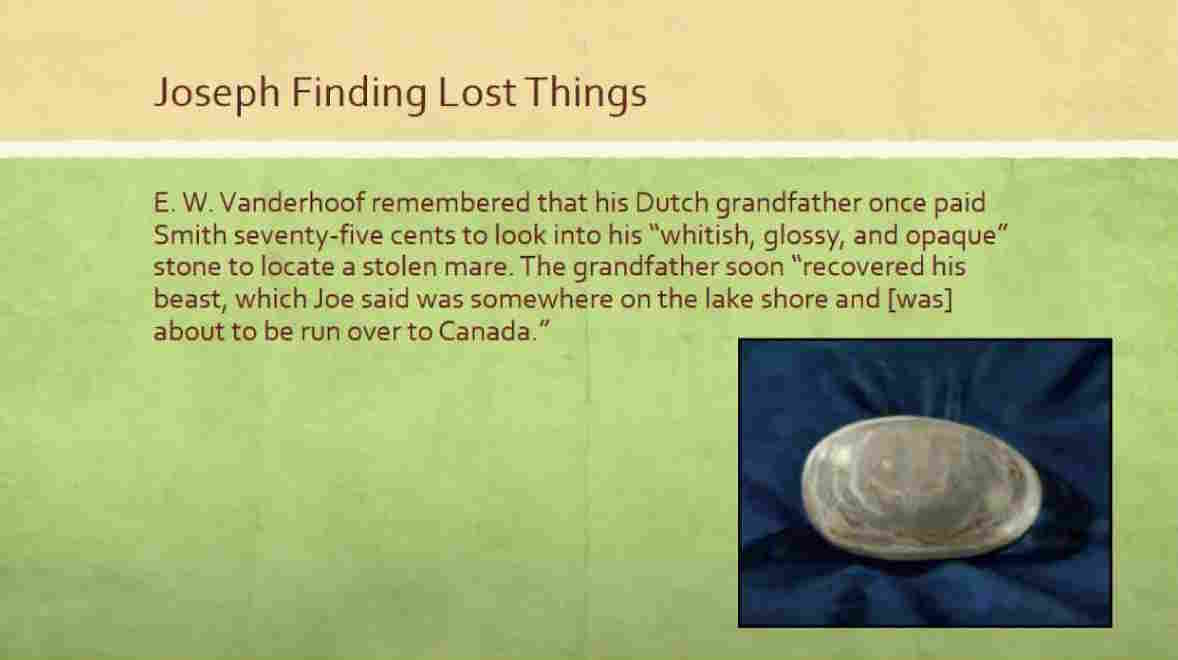 Someone said, “Why don’t you ask Joe Smith to look into his stones to tell you where you lost it and where it can be found?”