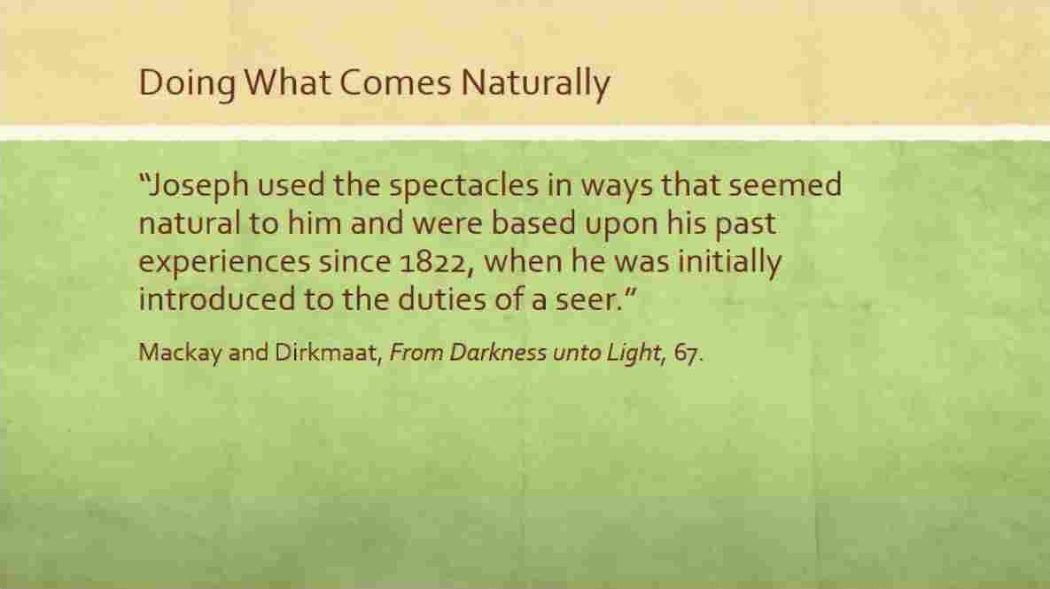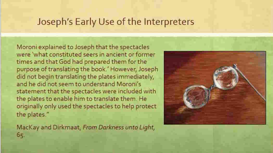 So now we’ve got a problem. We’ve got to translate the Book of Mormon, we’ve got to find a way to do it. Joseph had to find a way to do it.