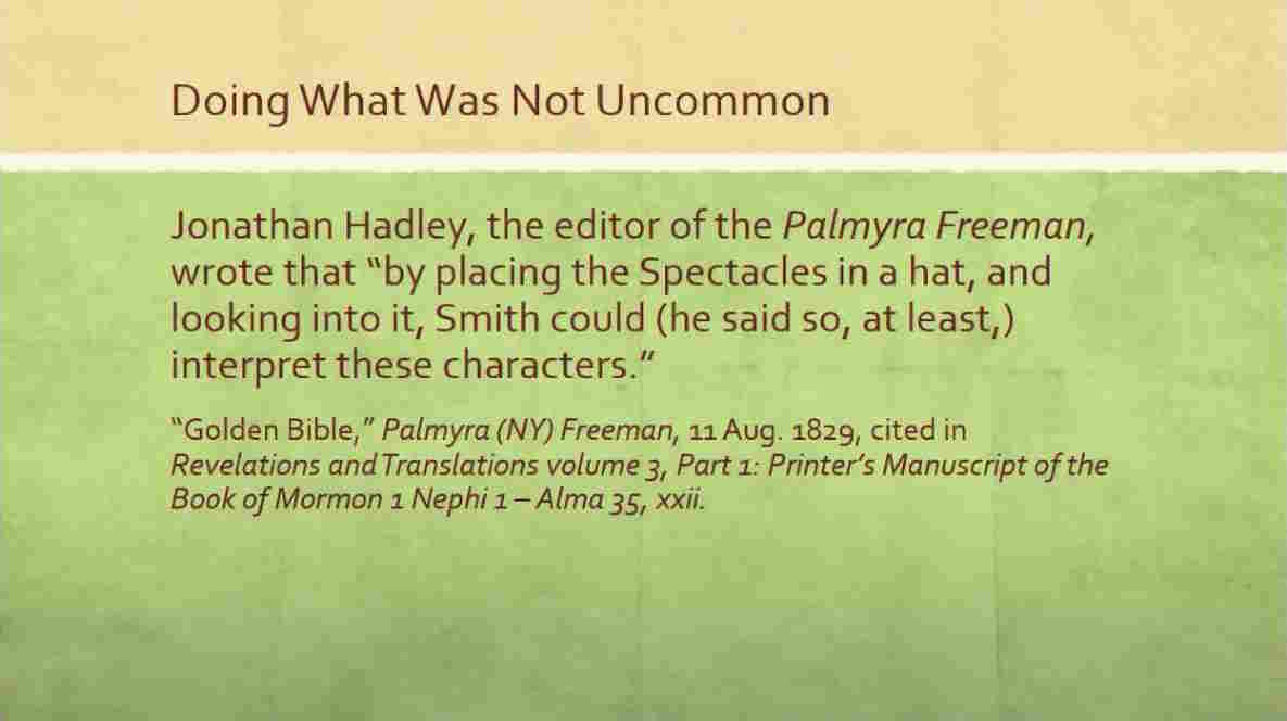 A couple of stories about Joseph and seer stone, and what I want to notice is that the story starts off exactly the same way as what we expect, and we’ll talk a little bit about how history got morphed over time.