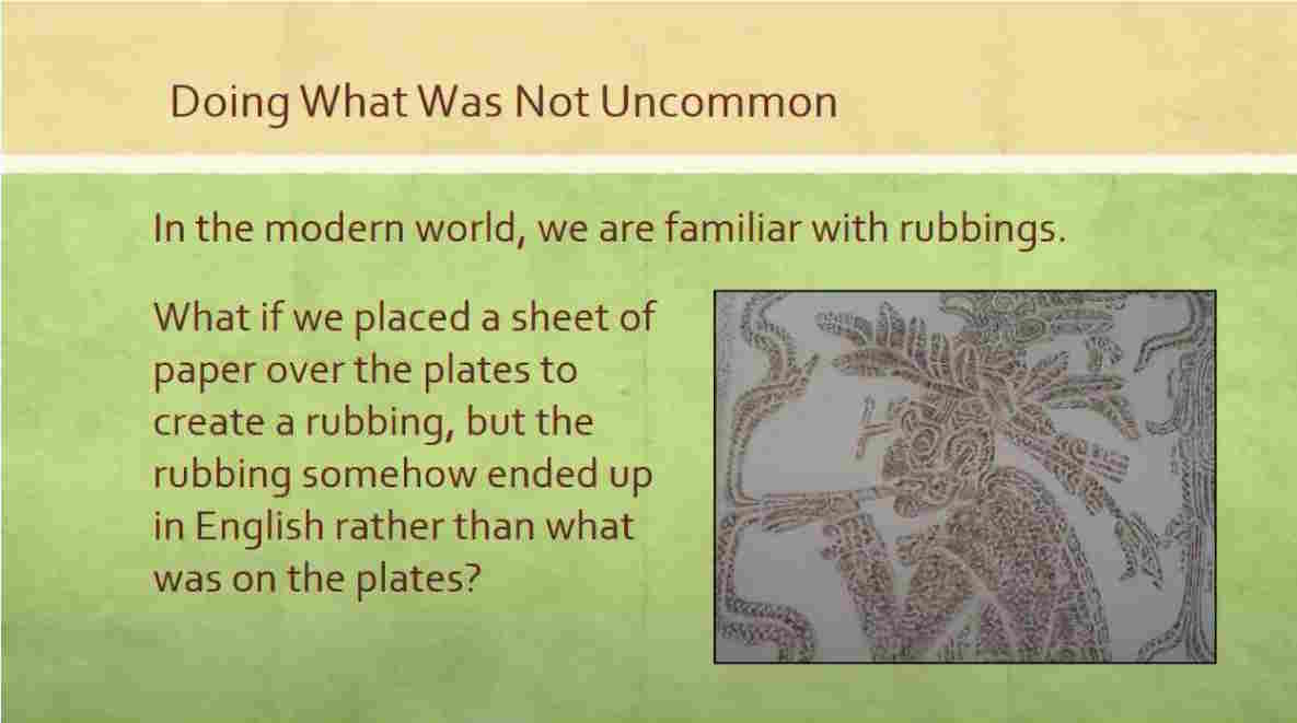 And he probably does exactly what you’re seeing here. He probably moves one of the plates over, he probably runs his fingers across the engravings and feels what it’s like, and he looks at it and says, “I got no clue. What now?”