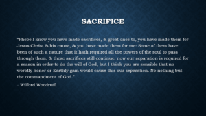 “Phoebe, I know you have made sacrifices, and great ones too. You have made them for Jesus Christ and His cause, and you have made them for me. Some of them have been of such a nature that it hath required all the powers of the soul to pass through them, and these sacrifices still continue. Now, our separation is required for a season, in order to do the will of God. But I think you are sensible that no worldly honor or earthly gain would cause this our separation—no, nothing but the commandment of God.”