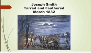 Joseph flees from men that didn’t just want him scarified and defaced from the tar and feathering. As Joseph moves on to Missouri, he tells Emma to go back to Kirtland. She goes back to Kirtland and lives with various people. Eventually Joseph returned and they lived over the Newell K. Whitney store.
