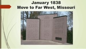 We also know that she moves on to Far West, Missouri. In Far West there are many revelations that come. This includes the name of the Church, official name Section 115, the Church of Jesus Christ of Latter-day Saints. We also know in Far West, there’s a lot about tithing and eventually temple stones placed in the ground. But for Far West, it was a difficult time for Emma.