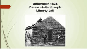 Before she does so, she stops in to visit Joseph Smith. He’s been in the Independence Jail in Richmond and Liberty Jail. As Emma comes to visit him, obviously, it’s a joy to Joseph. But it is difficult for her to leave him. She is now going to make her way with her children out of the state.