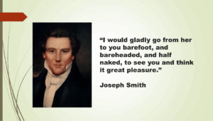 Emma and Joseph write letters back and forth. Joseph actually writes more. Joseph said in one letter, “I would gladly go from here to you barefoot and bare-headed and half-naked to see you and think it great pleasure.” So some wonder, did Joseph love Emma? I think no question about it.