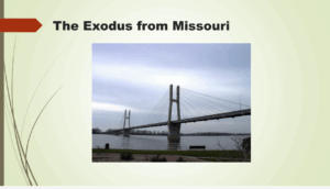 They exodus Missouri and head toward a barge town called Quincy, Illinois. When they reached the Mississippi River, the barge that was to take them from across had stopped running. The river was also covered in a lot of ice. Eventually, when the ice froze over, Emma will now cross that Mississippi River on the ice. She will have four children at that time. She makes her escape from Missouri with Julia, Joseph Smith III, and two babies in arms. Emma also carried out sacred papers from the prophet.