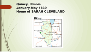 Now, when she arrives in Quincy, she will be invited to stay in the home of Judge Cleveland. She becomes good friends with his wife, Sarah Cleveland. Sarah plays a leading role in the Relief Society when it’s finally organized.