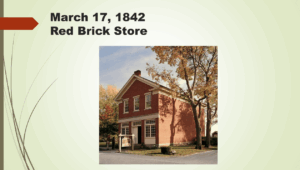 Now we know that on March 17th, 1842, the Relief Society was organized in Joseph Smith’s red brick store. It was organized on the second floor. About 20 women had gathered, ranging in age from about 18 to 59. They were all in different marital situations. They needed to decide what to name the society. Some had put forth the idea like it would be a benevolent society, like you could find in the different 26 states of the United States. They had all of these women who were philanthropic, did wonderful things. But the decision was made that they would call it the Female Relief Society of Nauvoo.