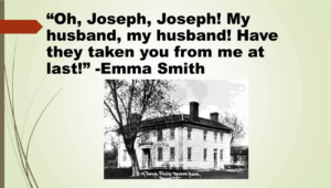 Joseph’s body was brought back to the Mansion House. Emma said as she came in to see his remains, “Oh Joseph, Joseph, my husband, my husband, have they taken you from me at last?“
