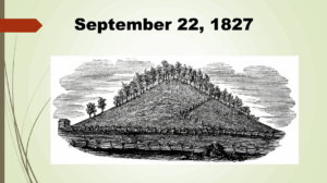 On September 21st evening of 1827, Joseph and Emma went together from the Smith home to the hill close by. There Joseph will go up and will commune then with the angel Moroni. He will receive the plates. When he comes back to the wagon, we know where Emma had been staying. We know that she then becomes the first person in this dispensation to know that Joseph Smith has the plates.