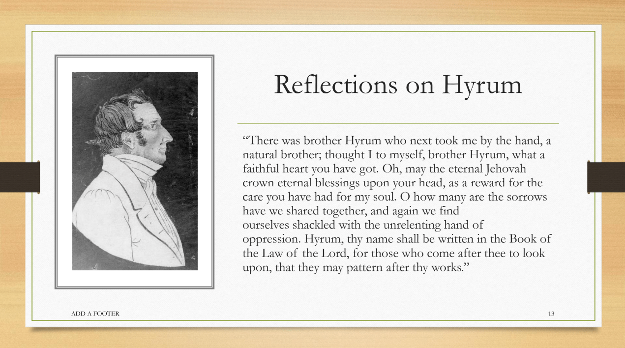 From Emma his thoughts then moved to his brother Hyrum, the next to embrace him the evening of the 11th. Joseph included a blessing here, asking