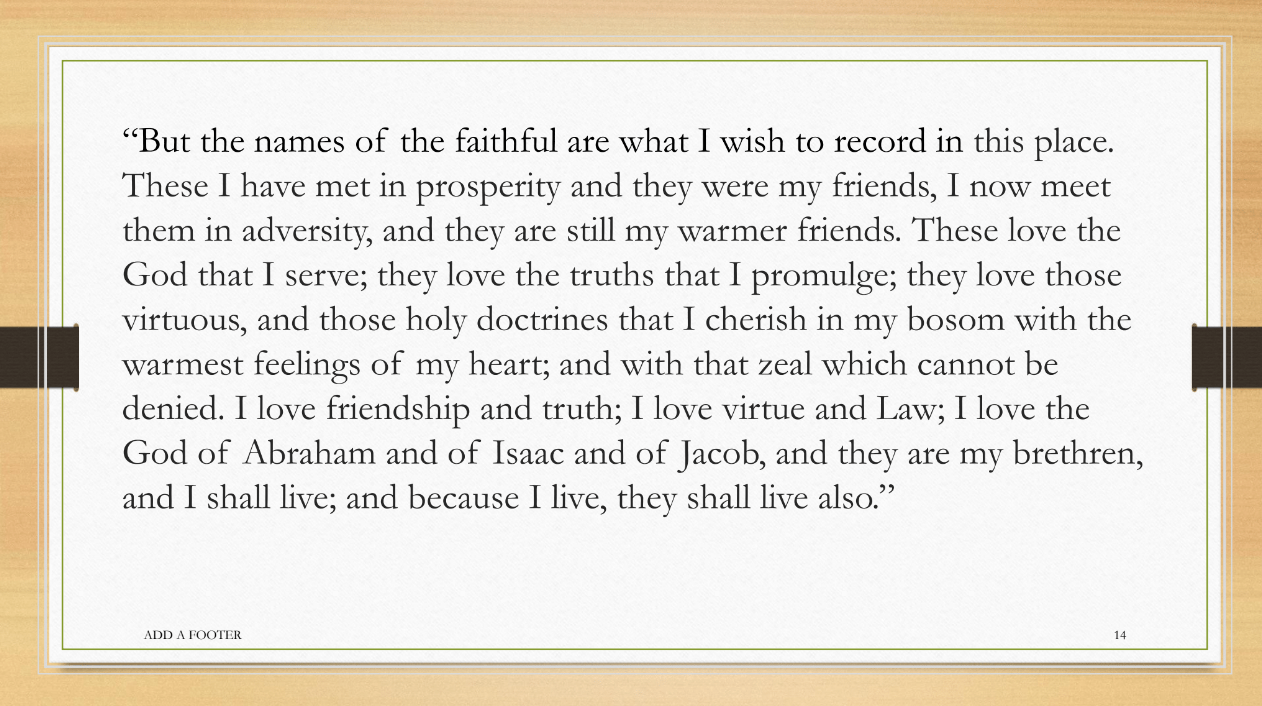 While I readily acknowledge that these themes are by no means limited to the summer of 1842; yet, I think they help us understand some of the key elements of this momentous summer and what it meant to Joseph Smith and other Latter-day Saints.