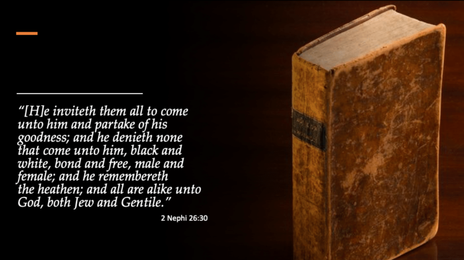 This contest over Mormon whiteness, Reeve argues, led Young and others to abandon the racially inclusive attitudes found in Latter-day Saints scripture and encouraged by many early Church leaders (including Joseph Smith and Brigham Young). Perhaps no verse is more unequivocal on this point of inclusivity in Book of Mormon than 2 Nephi 26:30 in which Nephi declares “He [the Lord] inviteth all unto him and partake of his goodness; and he denieth none that come unto him, black and white, bond and free, male and female; and he remembereth the heathen; and all are alike unto God, both Jew and Gentile.”