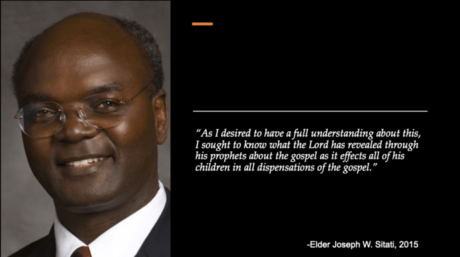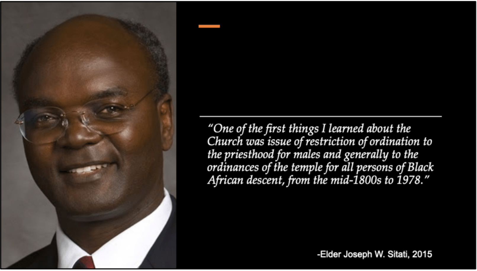 Looking to the examples of Black members who have confronted this topic is, I believe, particularly helpful. In 2015, speaking at the “Black, White, and Mormon,” Conference at the University of Utah, Elder Joseph W. Sitati who joined the Church in Nairobi, Kenya, in 1986, shared his own experience on reconciling the ban.
