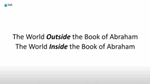 Now, with about fifteen minutes left — we can discuss the world inside the Book of Abraham. Let’s take a look at some of the features of the text of the Book of Abraham. We can fashion a plausible ancient Egyptian context by converging what is described in the text with what we know from the outside world.