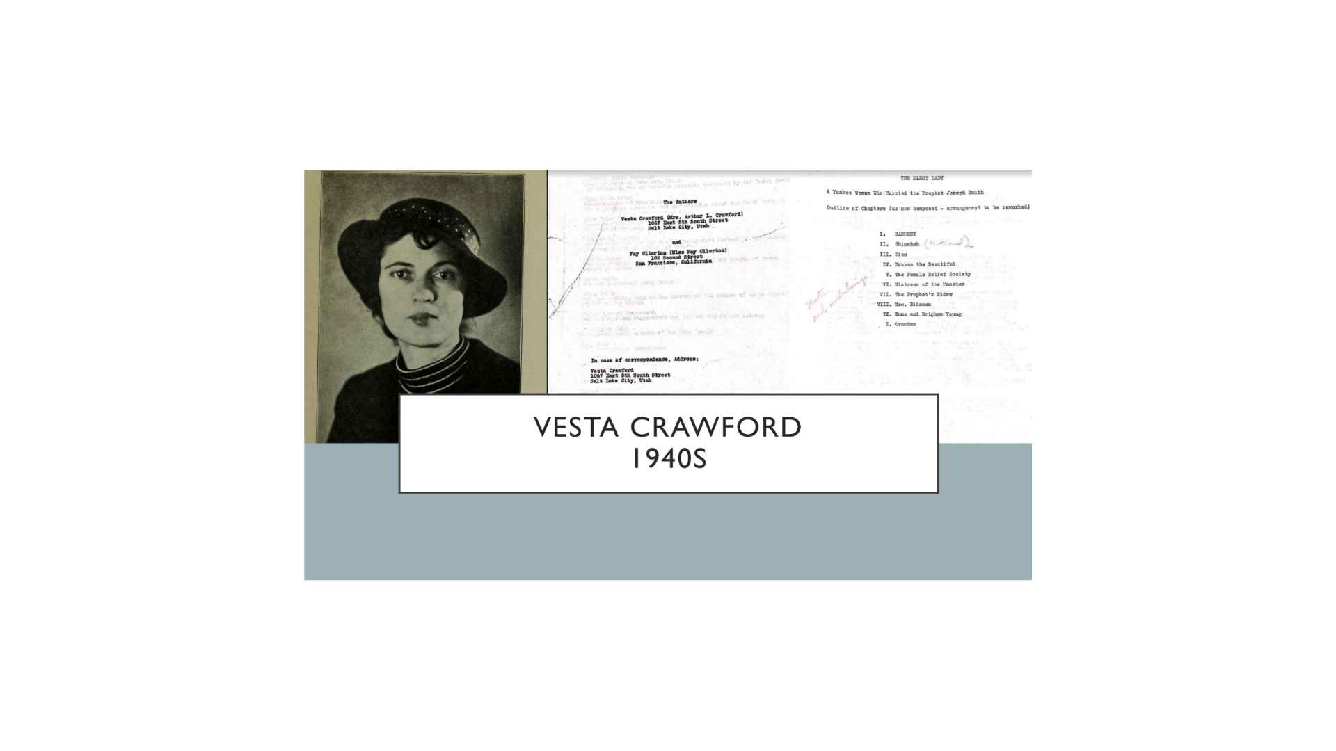 Then we don’t really hear about Emma until the 1940s. This woman, Vesta Crawford, was a descendant of Charlie Bidemann, that illegitimate son of Louis Bidemann while he was married to Emma. She joined the Church, she was the editor of the Relief Society magazine, and she was really curious about why Emma didn’t come west.