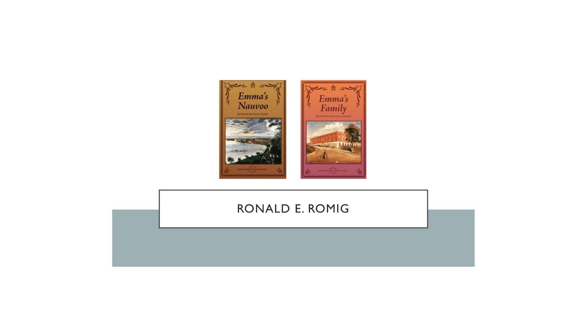 And we have Ron Romig, who is a historian for the Community of Christ, formerly known as the RLDS Church, who’s done some short little pieces about Emma’s Nauvoo and Emma’s family. He provides excellent information about Emma and her life after the death of Joseph. And some good primary sources are printed in these small books that are published by the John Whitmer Association.