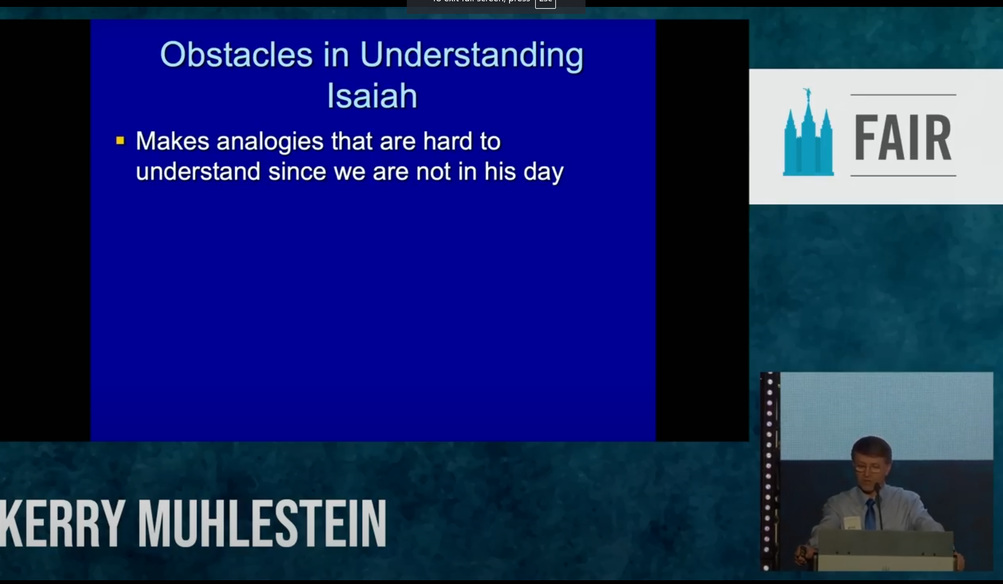 It’s wonderful to be with all of you, although those lights are so bright I can’t see you very well. But I’m just glad to be here, and I love FAIR and all that they do. So, I guess I’ll give my plug to donate money as well. I’m especially excited this year to talk about Isaiah. We’re just about there in the Come Follow Me readings; we’re about a month away from when we start to study Isaiah. That’s why I thought this would be a great topic for right now.