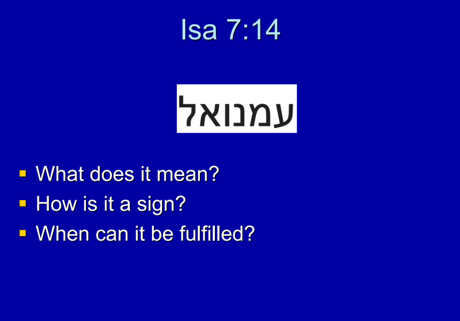 So now back to Isaiah chapter 7 and what we call the Emmanuel prophecy. Emmanuel, which literally means, ‘God is with us,’ and so this is the Emmanuel prophecy. We may have to ask ourselves how this is a sign. We’re going to read a little bit here. What happens is, as I said, God sends Isaiah to king Ahaz to tell him ‘you’ve got a third option.’