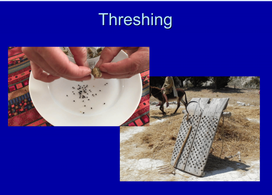 So, Isaiah will talk about threshing and winnowing. Even a hundred years ago, almost everyone would have been familiar with that, but we are no longer a very agrarian society, and most people aren’t familiar with threshing and winnowing today. So, stop and ask yourself, even if you’re familiar with it today, we do it a little bit differently than they did. Get online and do research or whatever you want to do, but find out what threshing is and how it works. Learn the details of it. What is winnowing, and how does it work?