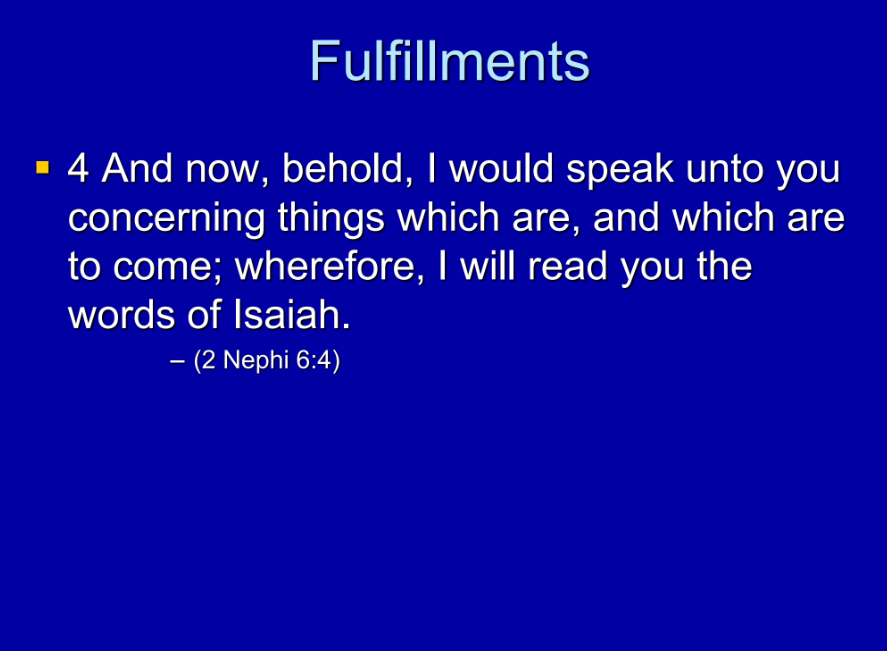 Nephi gives us this idea in 2 Nephi chapter 6, where he says, ‘Behold, I would speak unto you concerning things which are and which are to come; wherefore, I will read you the words of Isaiah.’ Meaning, when we read Isaiah, we can talk about things that are in our day and also in another day at the same time because Isaiah, and this is part of why Isaiah is difficult, he has to be just a little bit vague in order for his prophecies to be fulfilled in multiple time periods.
