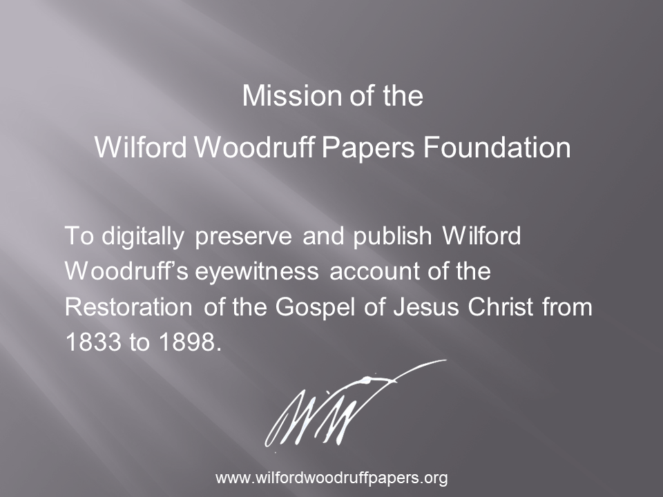The mission of the Wilford Woodruff Papers Foundation is to publish everything that Wilford Woodruff ever wrote, that has survived, to share his eyewitness account of the Restoration of the gospel of Jesus Christ for those 65 years. But more important than his words, are his stories. And to make those records universally accessible is with the hope that will inspire all people, but especially the rising generation, to study and increase their faith in Jesus Christ. And better understand the temple.