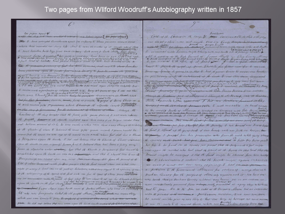To begin with, I would like to explain the title of my presentation: Discovering Church History. I think there’s a couple of meanings to that word. And in this setting, I think the first is our own seeking and our own study, to discover church history and what we as a collective group offer to others who are seeking truth. I also believe that the Wilford Woodruff Papers is a great asset to that body of scholarship and will provide more information and more documents and the ability to study more church history to add to the great group that we already have. And the third is what Wilford Woodruff offers himself. It’s not just the words that he’s recorded, but his example of living according to the truth that he knew, and doing so completely, and from the very first day that he heard about the church in 1833.
