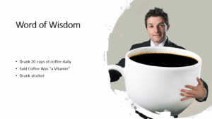 Well, as I, line upon line, got to the coffee part, I said, “Okay, I’m gonna do this, and I’m not gonna have any coffee.” And here’s what I found: coffee was a diversion. It was something to do. You could sip it, and you could stir it, and you could do all kinds of things with it. It made no difference in my life.