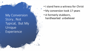 First of all, my conversion took 17 years. I was first introduced to the gospel when I was 19 years old. Someone invited me to—well, I don’t know, it was a missionary open house and a few picnics sponsored by a local congregation. I went to the missionary open house, and I didn’t get it. They were using Church terminology. I remember they kept saying, “I bear my testimony,” and I’m like, “What are they talking about?”