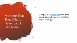 Of course, in the scriptures: Adam fell that men might be; and men are, that they might have joy. I was joyless. And I probably didn’t know it for a while.
