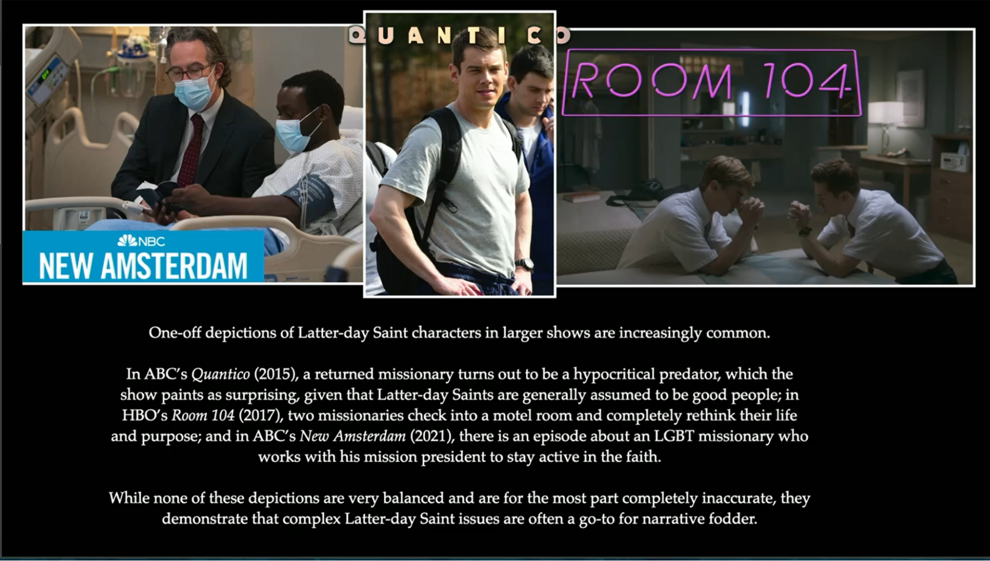 So, Westerns, Sci-fi increasingly feature one-off depictions of Latter-day Saint characters. Although these shows might inaccurately represent certain aspects, the characters themselves play central roles.