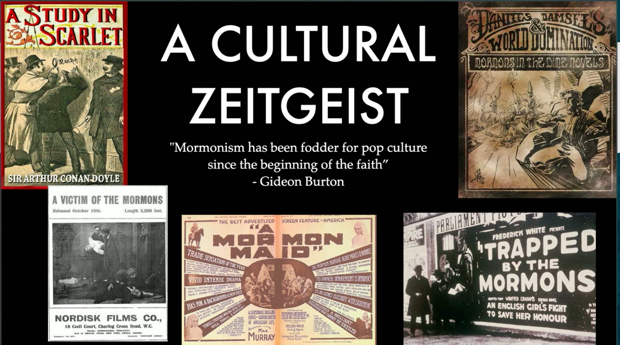 Sherlock Holmes’ first mystery involved the Danites and Mormons in Utah, and how dangerous they might be. Films and Dime novels such as A Mormon Maid, and Trapped by the Mormons, which were a huge deal. Dime novels about Porter Rockwell and the avenging angel that he might be, all of this kind of mystique and interesting fascination came because the history was so different from what people were used to.