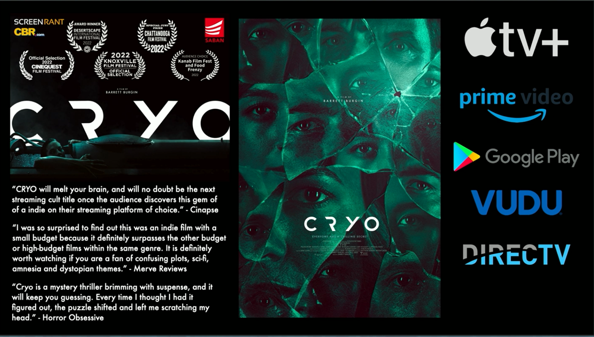 Cryo will melt your brain and will undoubtedly become the next streaming cult title once the audience discovers this gem of an indie film on their platform of choice.”