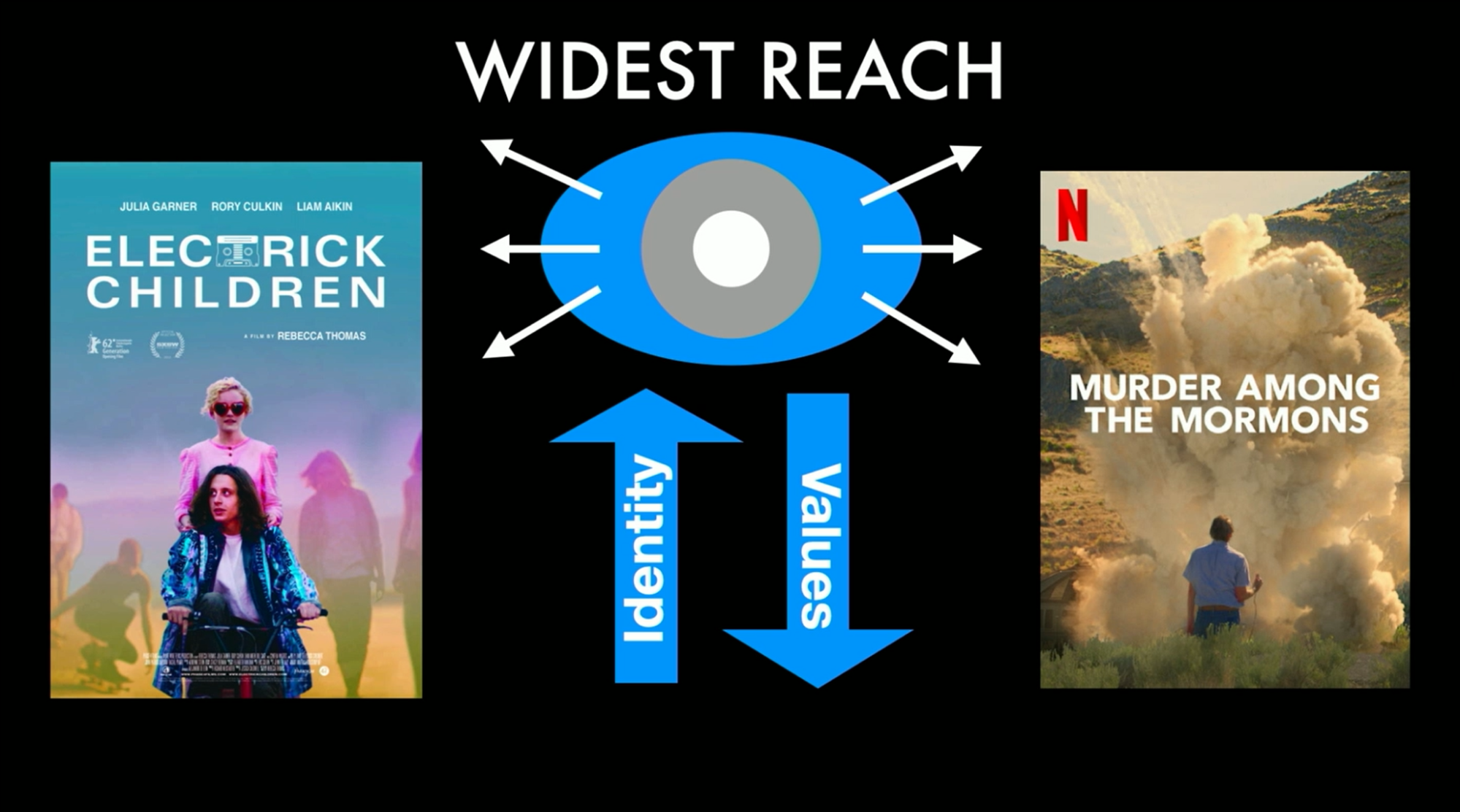 My proposal is that the widest reach can be achieved by up-playing our identity and downplaying such specific values. I argue for exploring a diverse range of values and themes, as demonstrated by my short film, The Next Door, which is not particularly about trying to inspire or convert, but rather just tell a good, relatable human story, and yet so identifiably Latter-day Saint missionaries. These are examples of shows and movies that had a wide reach and are unabashedly about either Latter-day Saints or Latter-day Saint adjacent concepts.
